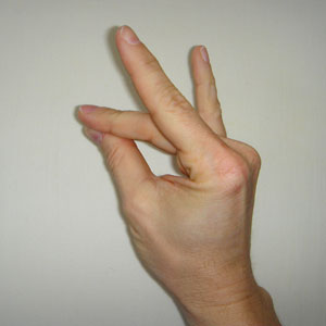 Now bring your thumb and middle finger towards each other until they touch.